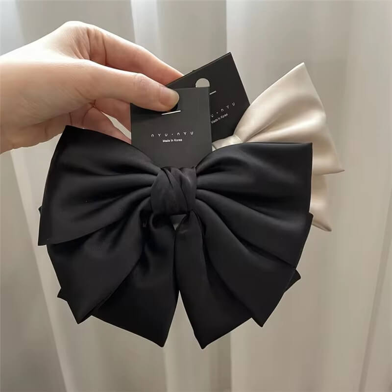 หมุดผมหรูหราคริสตัล Rhinestone Bowknot Metal Hair Clip สำหรับผู้หญิงสำหรับของขวัญเทศกาลเครื่องประดับผมแฟชั่นสตรีกิ๊บติดผมผ้าไหมซาตินขนาดใหญ่สามชั้นสำหรับผู้หญิง